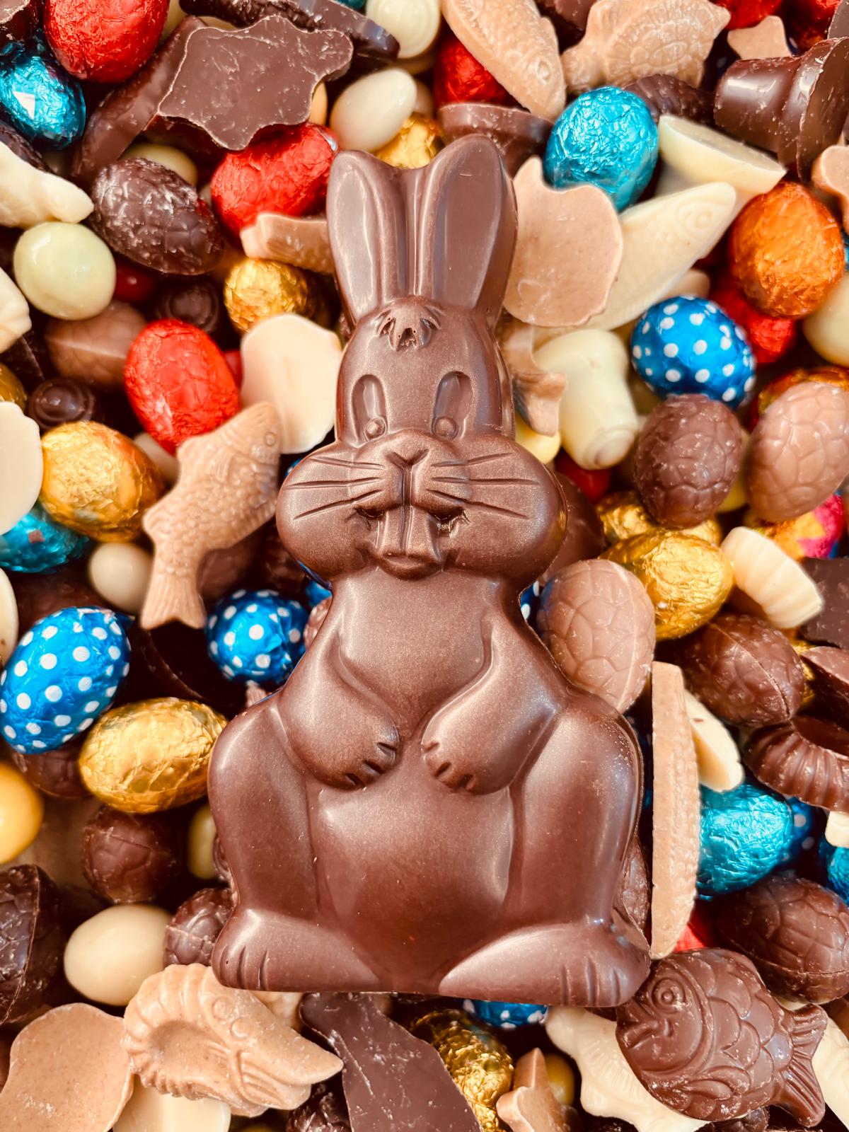 Praliné chocolat lait : cacao, beurre de cacao, amande, noisette, lait entier en poudre, sucre, émulsifiant (lécithine de colza), vanille Bourbon en gousse.